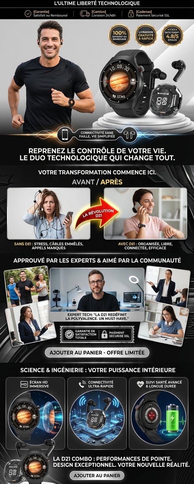 Alliez styles et technologies avec la Smartwatch D21 : suivi santé, notifications intelligentes et design élégant.